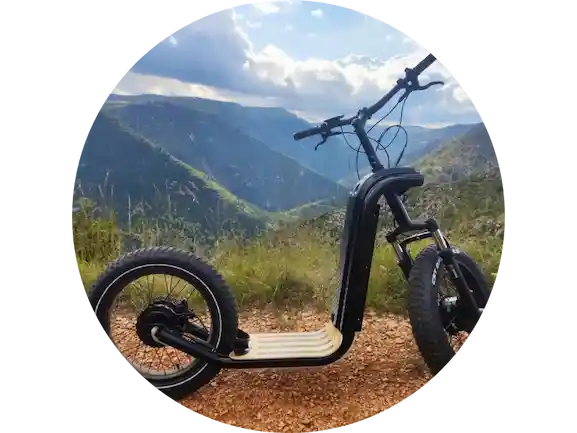 Spécialiste de la randonnée en trottinette électrique tout-terrain, nous vous emmenons explorer les paysages sauvages de la Lozère de manière ludique et écologique. Que vous soyez en famille, entre amis ou pour un séminaire, profitez de sorties encadrées accessibles à tous (dès 12 ans).